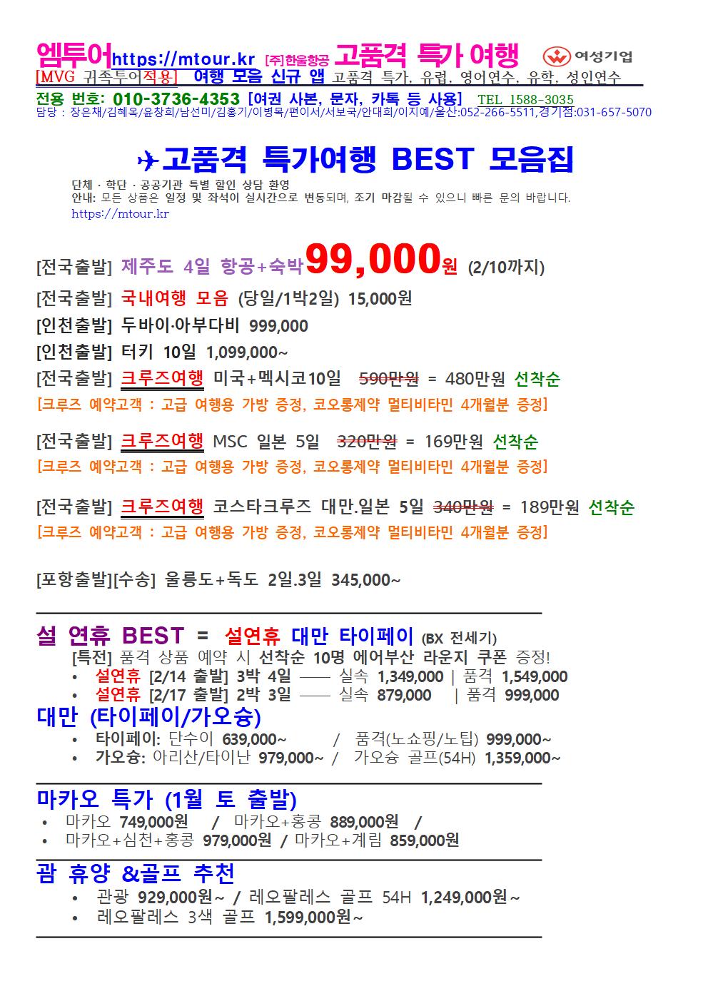 [전국출발] ✈️ 30가지 인기상품을 한눈에! ✈️고품격 · 특가여행 BEST 모음