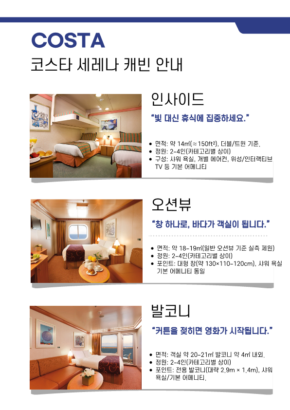 07 : 30 ~ 10:30 객실 종류별 순차적으로 하선