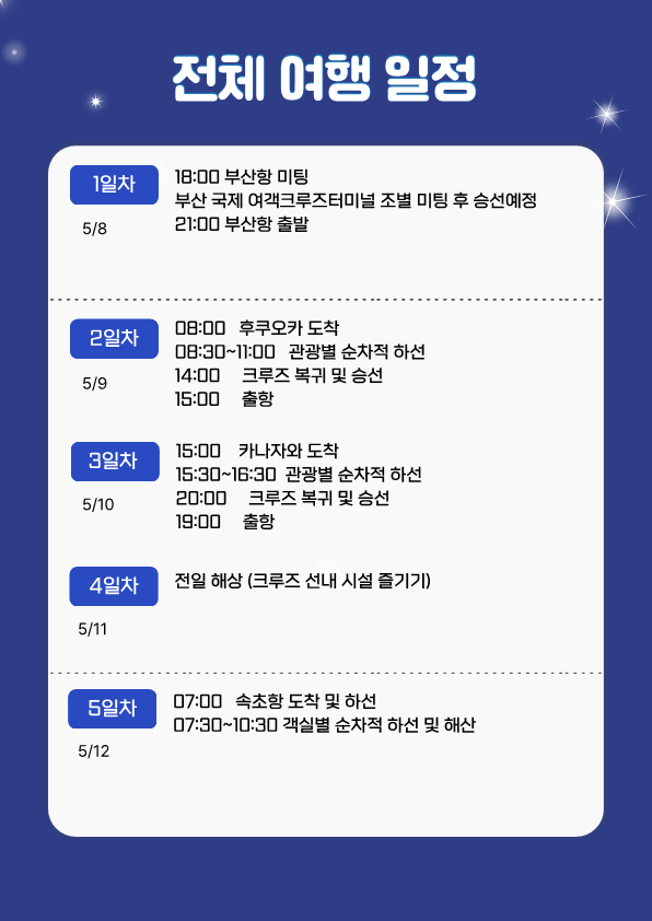2026년 가정의 달 한·일 크루즈 4박 5일 “부모님과 함께 떠나는 바다 위 효도여행” [후쿠오카·가나자와|부산출발/속초도착]
