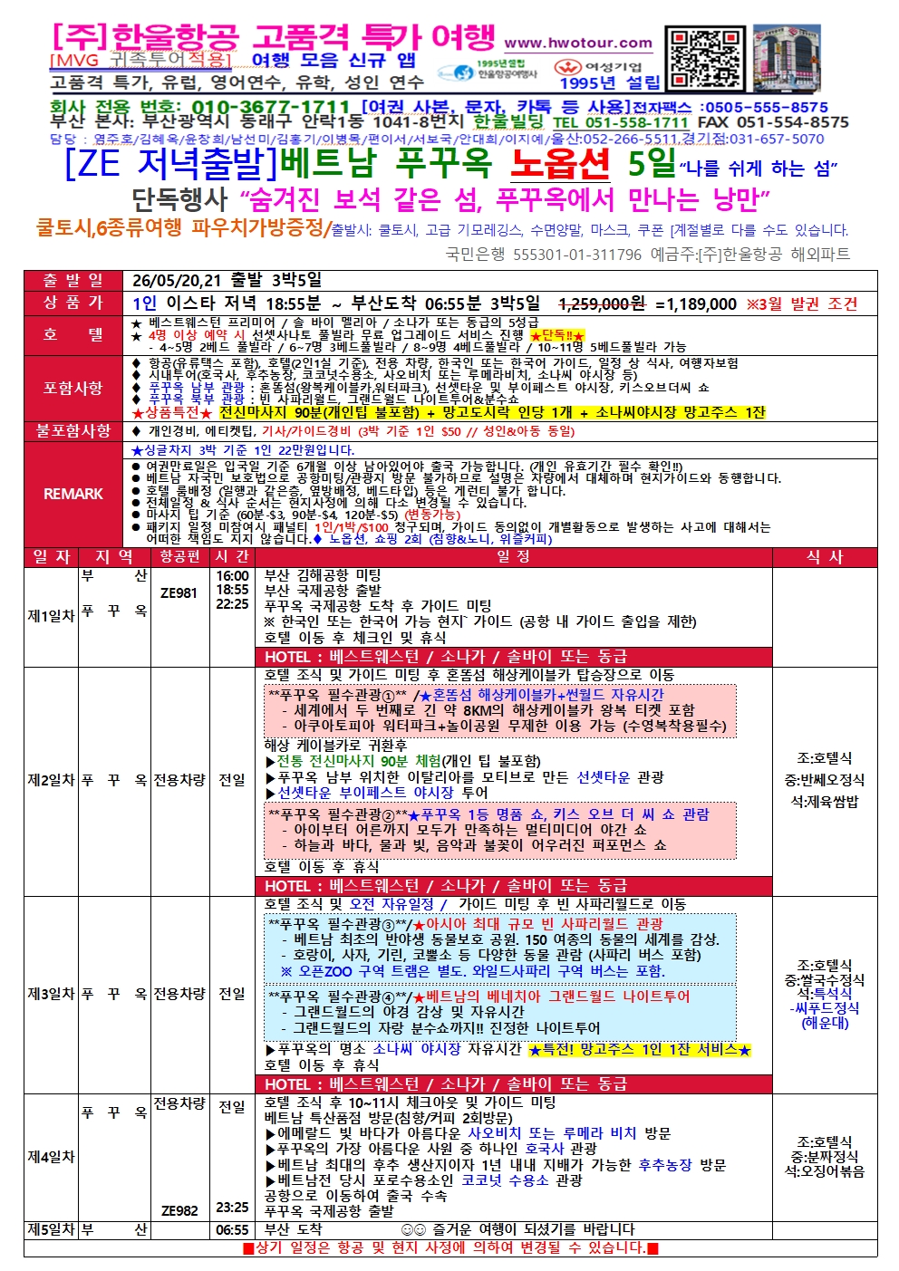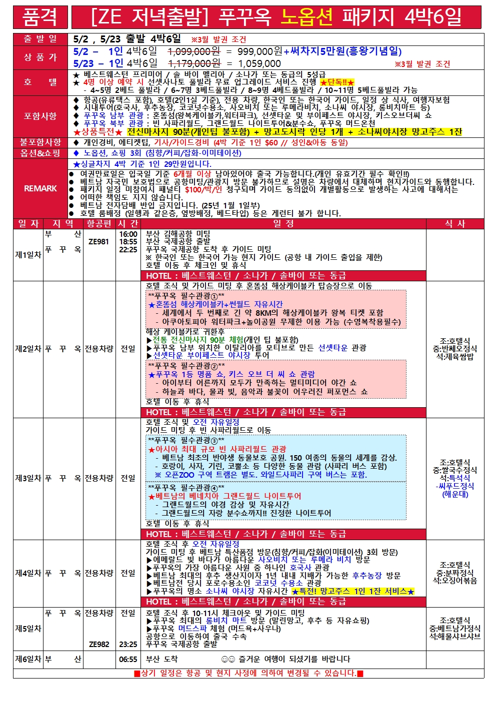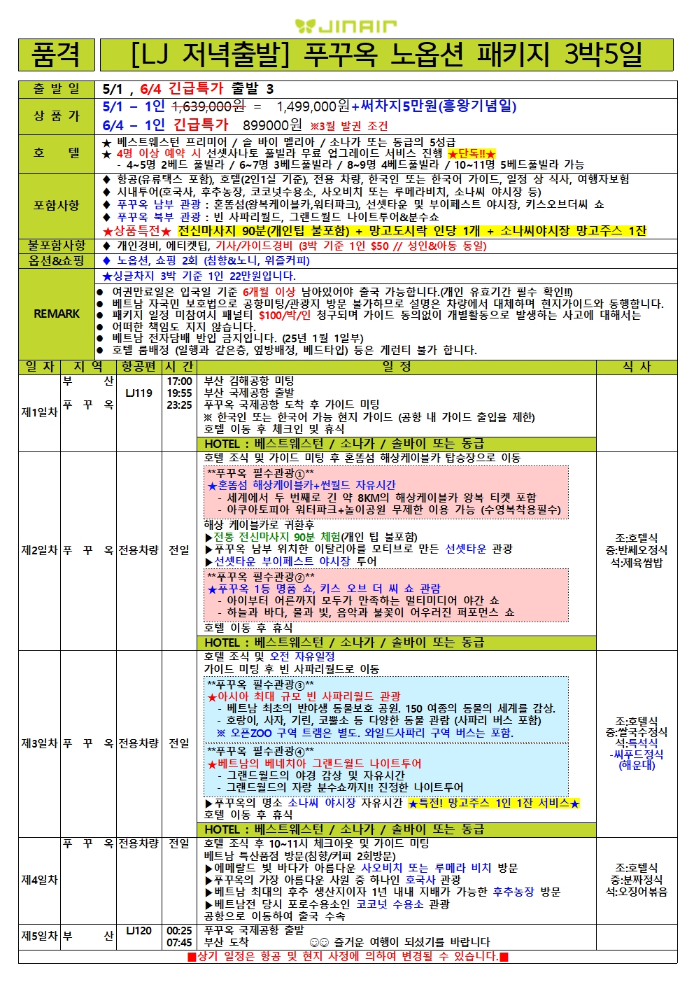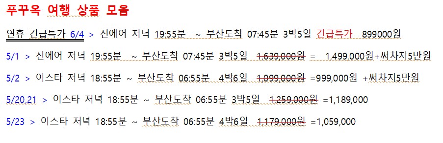 출발 6월4일 특가 899,000  5/1, 2, 20, 21, 23